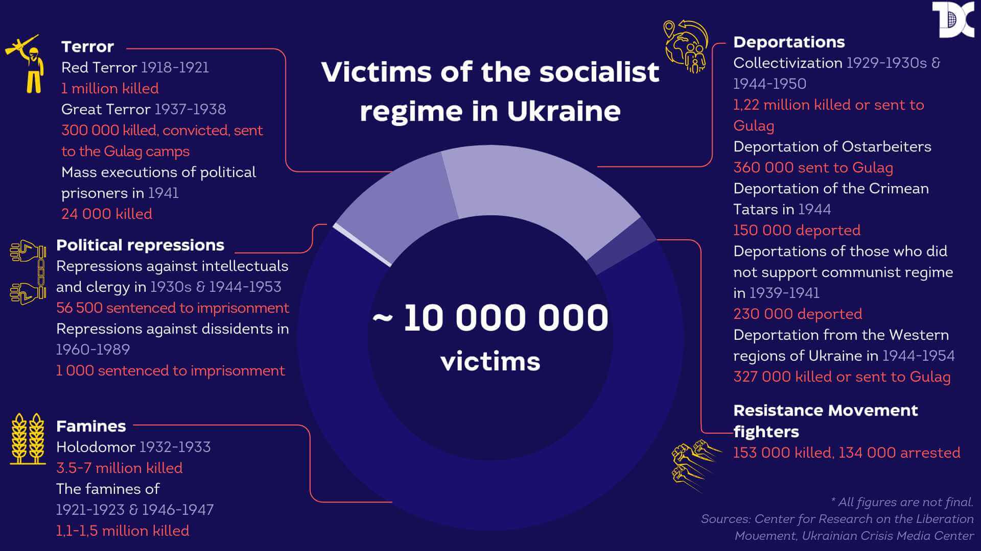 Finally, taking into account the disasters and tragedies Ukraine experienced throughout the 20th century, it is fair that Ukrainian society perceives Russians as a hostile nation, not only its current political leadership. Almost every Ukrainian family experienced losses not only in the cauldron of World War II but also in great famines, waves of political repressions, and deportations conducted by Russians.